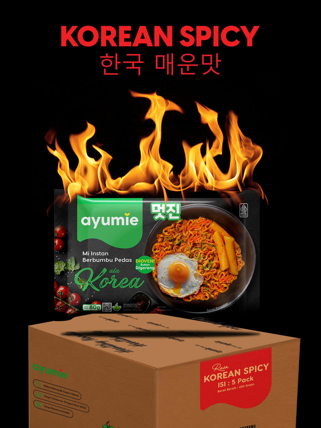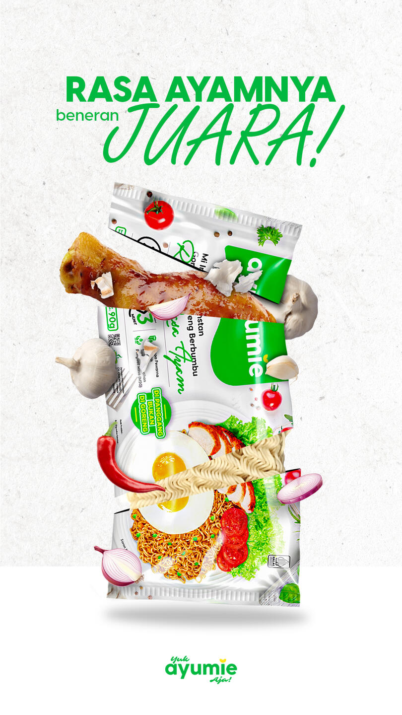 Ayumie adalah Mie Enak dan Sehat, yang terbuat dari Tepung pilihan. Pengeringan mie Ayumie di oven (panggang) bukan di goreng. Jadi jauh lebih rendah kalori dan rendah lemak. Aman untuk anak diatas usia 1 tahun - lansia. Karena tanpa Tambahan MSG Tanpa pewarna sintetis dan Tanpa pegawet. Memiliki tekstur kenyal dan keriting kecil. Jadi lebih mudah untuk dimakan anak-anak ataupun lansia. Rasakan kelezatan Ayumie dengan 2 pilihan Varian Ayumie, Rasa Ayam dan Korean Spicy